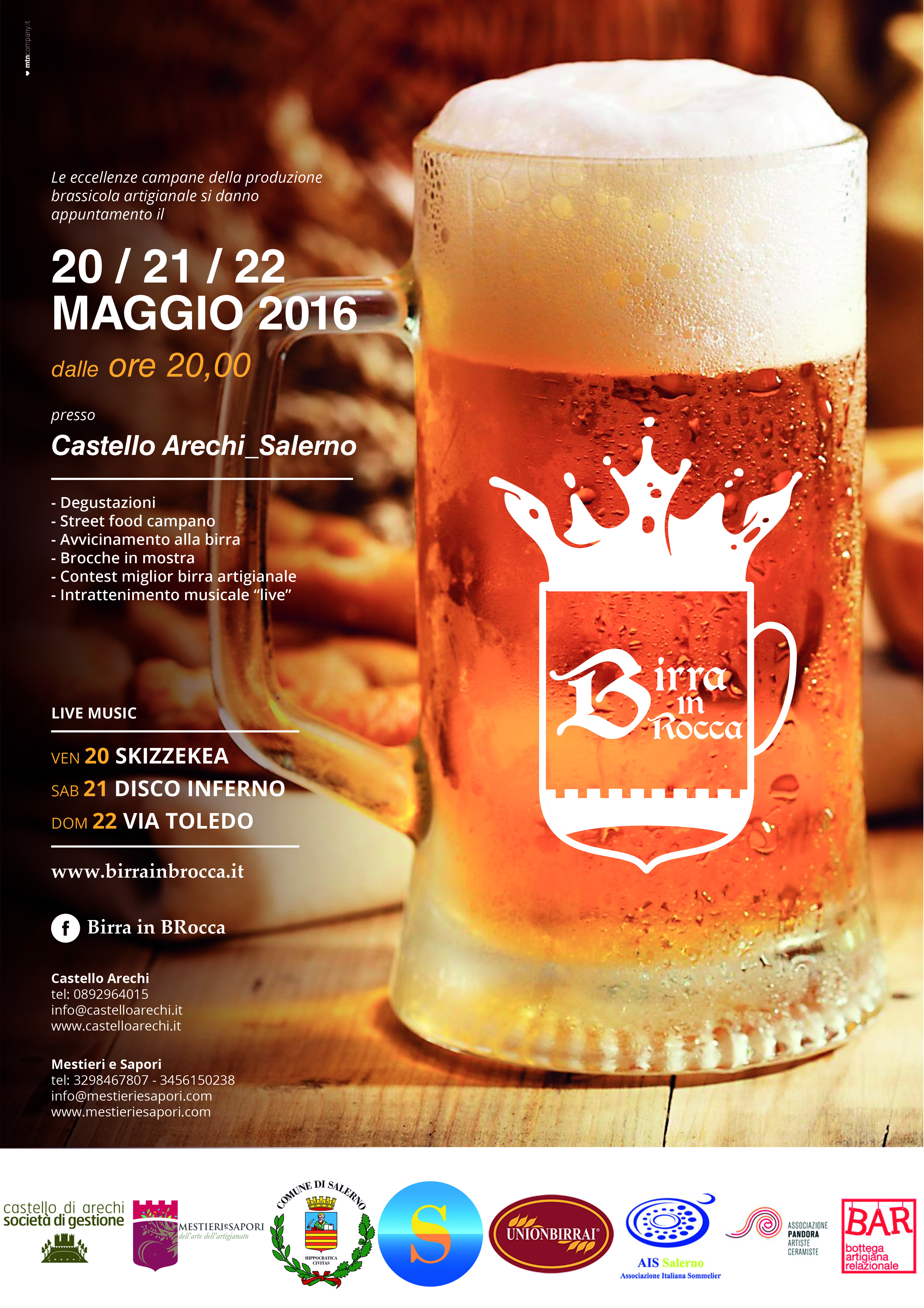 Ultime rifiniture organizzative e il Castello Arechi di Salerno sarà pronto ad ospitare, dal 20 al 22 Maggio 2016, la prima edizione di "Birra in B...Rocca", evento "multicanale" incentrato sulle eccellenze della produzione brassicola artigianale, quei Mastri Birrai di casa nostra che sposano la filosofia della genuinità "al servizio" dell’alta qualità. Degustazioni, mostre, workshop, musica live e solidarietà i punti salienti delle 3 giornate, frutto della rinnovata sinergia operativa fra la Società di Gestione del Castello e Mestieri e Sapori.