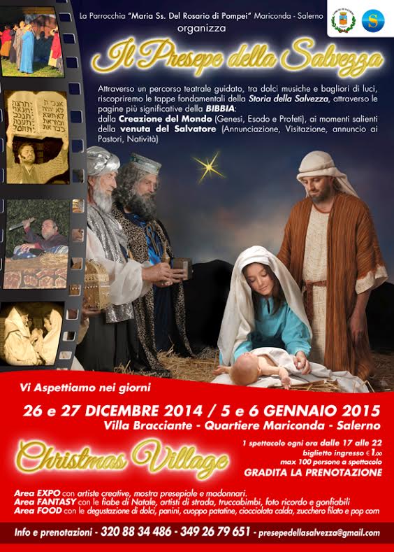 La Parrocchia “Maria SS. del Rosario di Pompei” del quartiere Mariconda di Salerno, in occasione delle prossime festività natalizie 2014, organizza la Seconda Edizione del presepe vivente, col titolo di “Il presepe della salvezza”. Trattasi di una caratteristica ed originale rappresentazione del presepe, UNICA nel suo genere a Salerno e Provincia, che enorme successo ha riscosso nella passata edizione con oltre 1000 presenze.