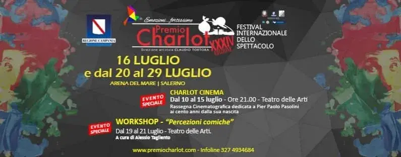 Si terrà, come ogni anno, nel mese di luglio la 34esima edizione del Premio Charlot. Il taglio del nastro si avrà il 10 luglio al Teatro delle Arti dove, fino al 15 luglio saranno proiettati, alle ore 21, tre film di Pier Paolo Pasolini, a 100 anni dalla sua nascita. Si prosegue poi, il 16 luglio all'Arena del Mare, nell'ambito della XX edizione del Sea Sun, con inizio alle ore 21.30 con il concerto dei "Gemelli di Guidonia". Al Teatro Delle Arti, dal 19 al 21 luglio spazio ai workshop "Percezioni Comiche" a cura di Alessio Taglienti. Mentre il 20 luglio all'Arena del Mare, torna la gara dei giovani comici, ospiti della serata "I Villa per Bene". Il 21 luglio spazio alla musica con Sandro Deidda che con il suo gruppo proporrà il concerto "Le grandi sigle della televisione".