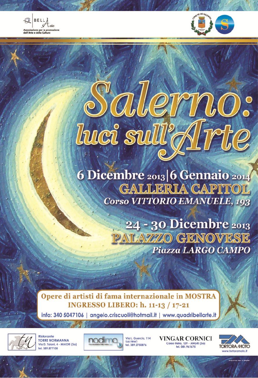 Dopo i successi delle mostre organizzate negli ultimi anni in Costiera Amalfitana, a Ravello (Villa Rufolo), Amalfi (Museo Arsenale), Positano (Museo del Viaggio) e Maiori (Palazzo Mezzacapo), nel mese di dicembre 2013 e fino alla fine delle Festività Natalizie, l’Associazione Bell’Arte presenta una prestigiosa rassegna d’arte contemporanea all’interno della Galleria Capitol e dello storico Palazzo Genovese di Salerno.