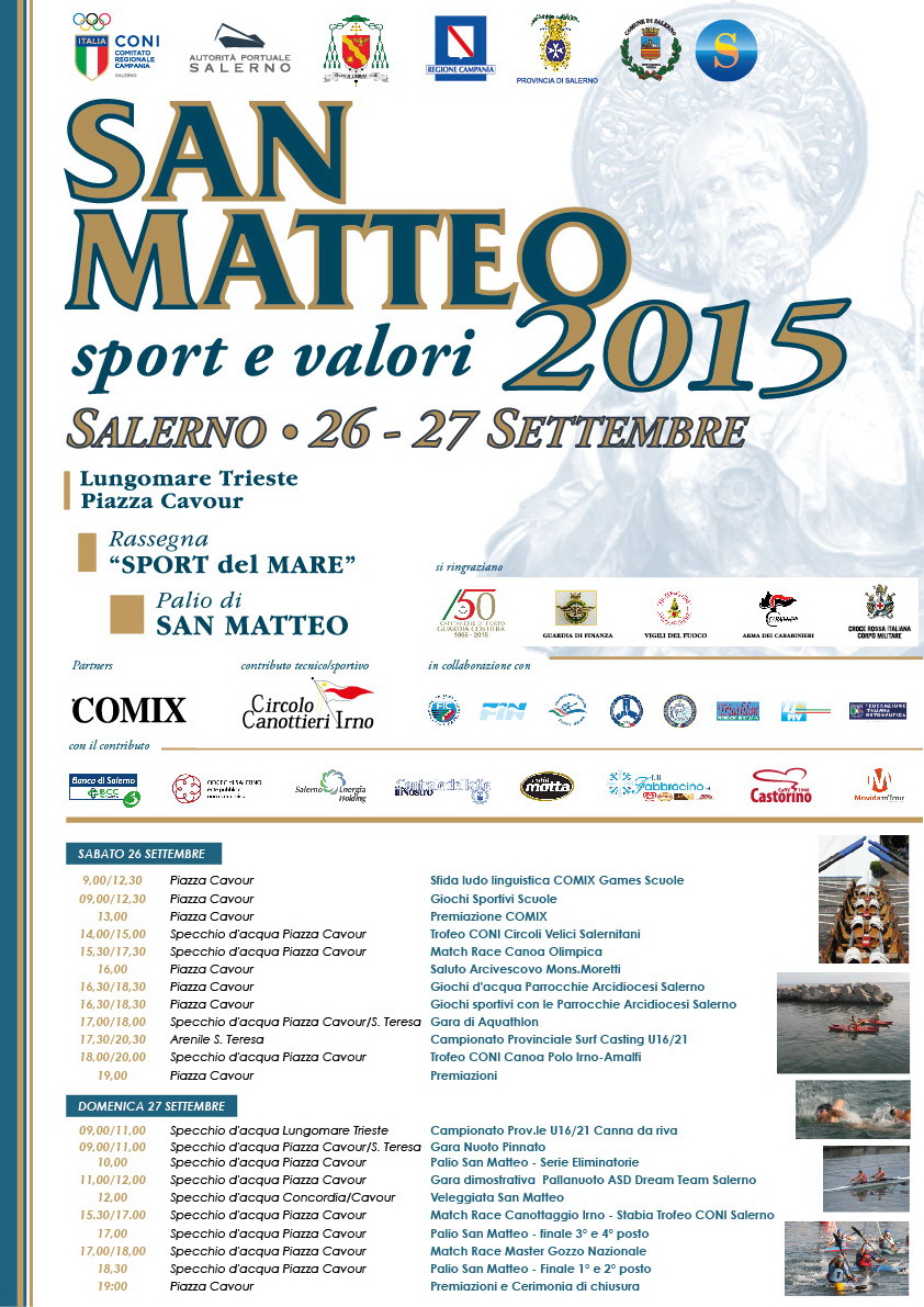Si terrà sabato 26 e domenica 27 settembre, in Piazza Cavour, sul lungomare Trieste, San Matteo-Sport e Valori, tradizionale rassegna di sport del mare in programma ogni anno in prossimità della festa patronale.