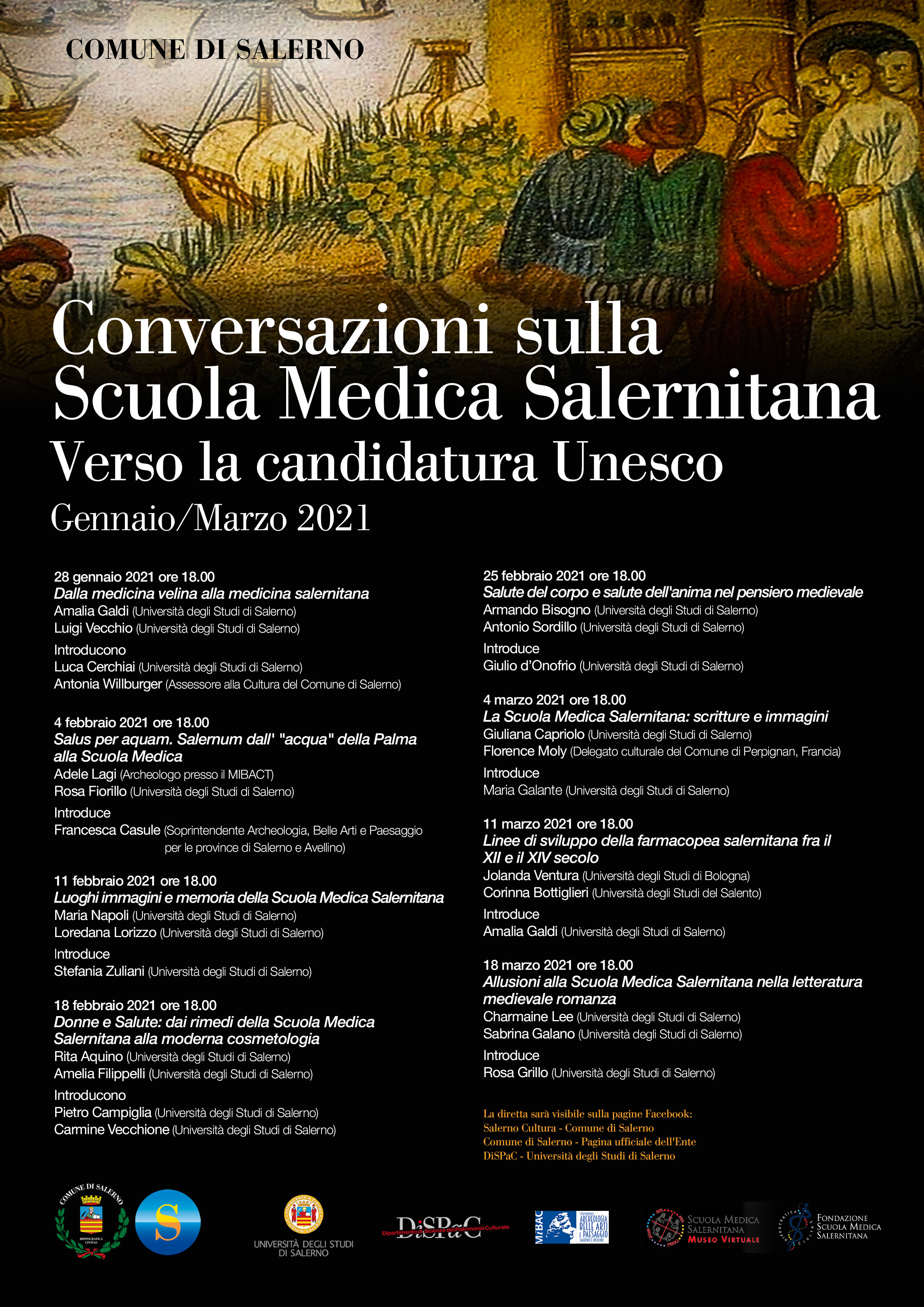 Il Dipartimento di Scienze del Patrimonio Culturale dell'Università degli Studi di Salerno avvierà dal 28 gennaio un ciclo di “conversazioni” proprio sulla Scuola Medica Salernitana.