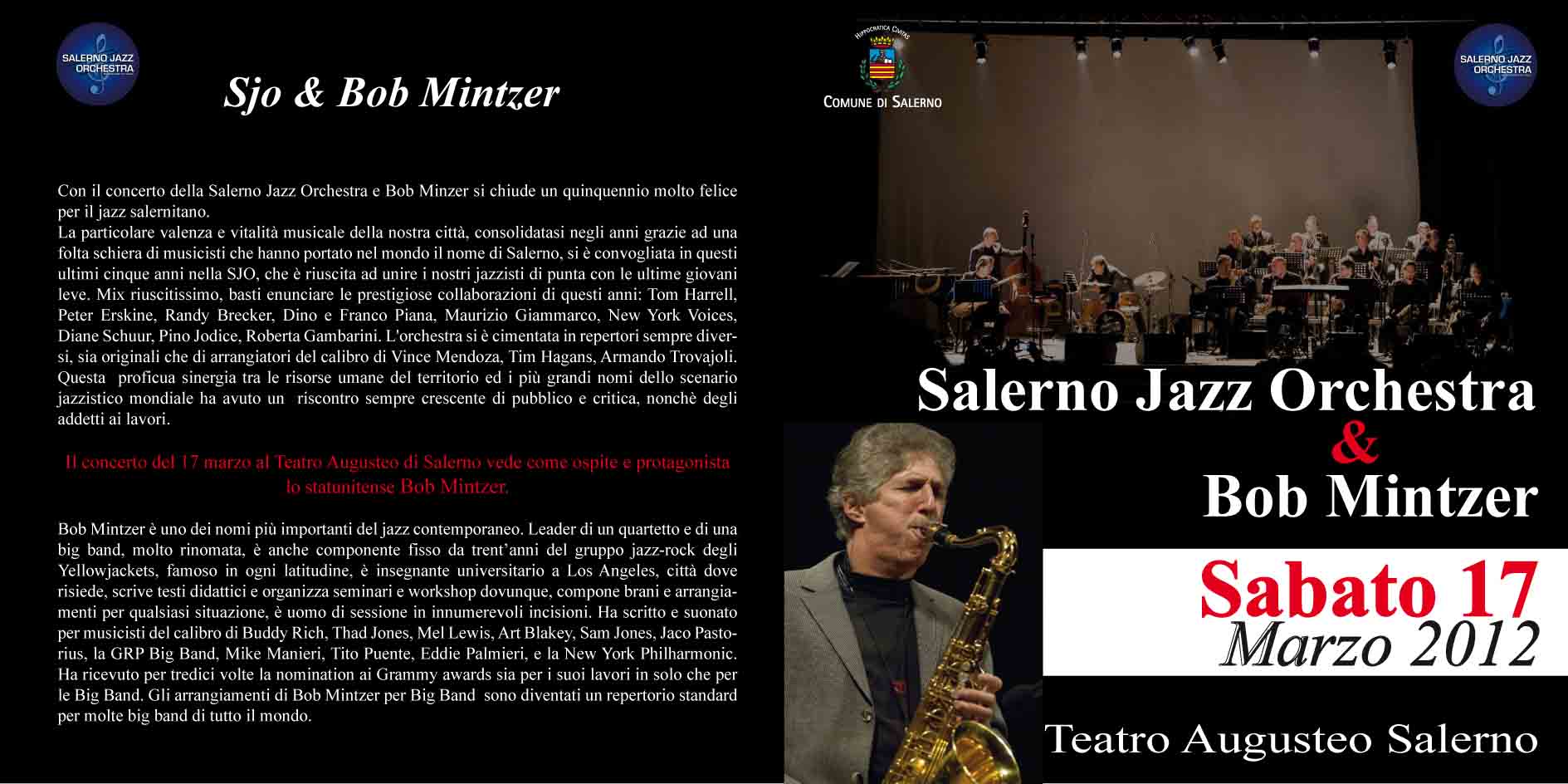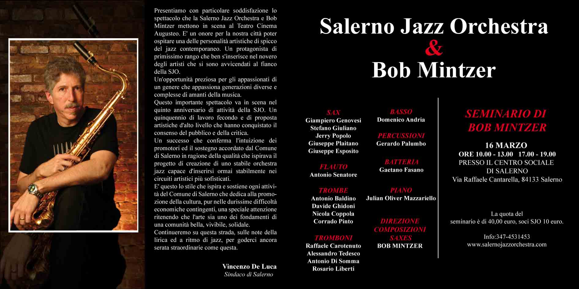 L'Associazione Salerno Jazz Orchestra in collaborazione con l'amministrazione del Comune di Salerno presenta il 17 marzo alle ore 21.30 presso il Teatro Augusteo il concerto della Salerno Jazz Orchestra con la guest Bob Mintzer.